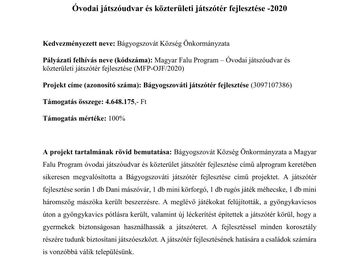 Bágyogszováti játszótér fejlesztése (2020 című, MFP-OJF/2020 kódszámú pályázati kiírás keretében)