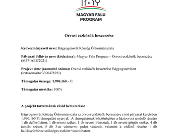 Orvosi eszköz beszerzése a Magyar Falu Program keretében 2021-ben meghirdetett MFP-AEE/2021 kódszámú pályázat keretében
